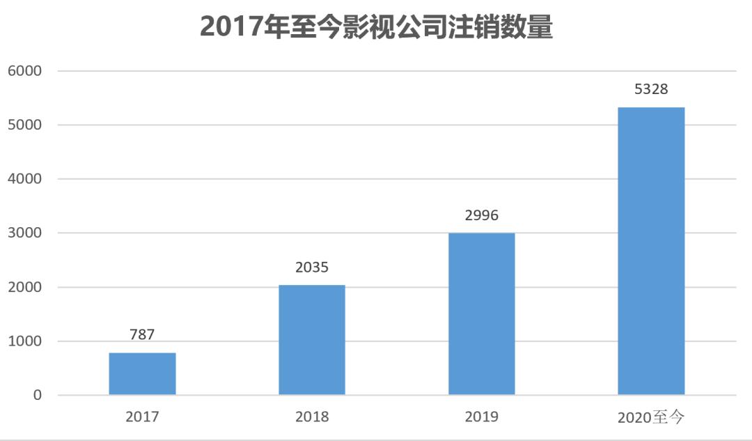 企查查数据显示,2020年至今,从事与影视相关的公司中,已经有5328家公司注销或吊销,是2019年全年注销/吊销影视公司数量的1.78倍。