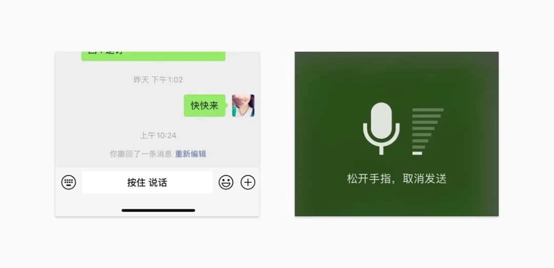 比如微信可在一定时间内撤销,语音上如果说错话,可以选择松开不发送出去。这些体验给用户有意识的错误带来一定程度上的可挽回。