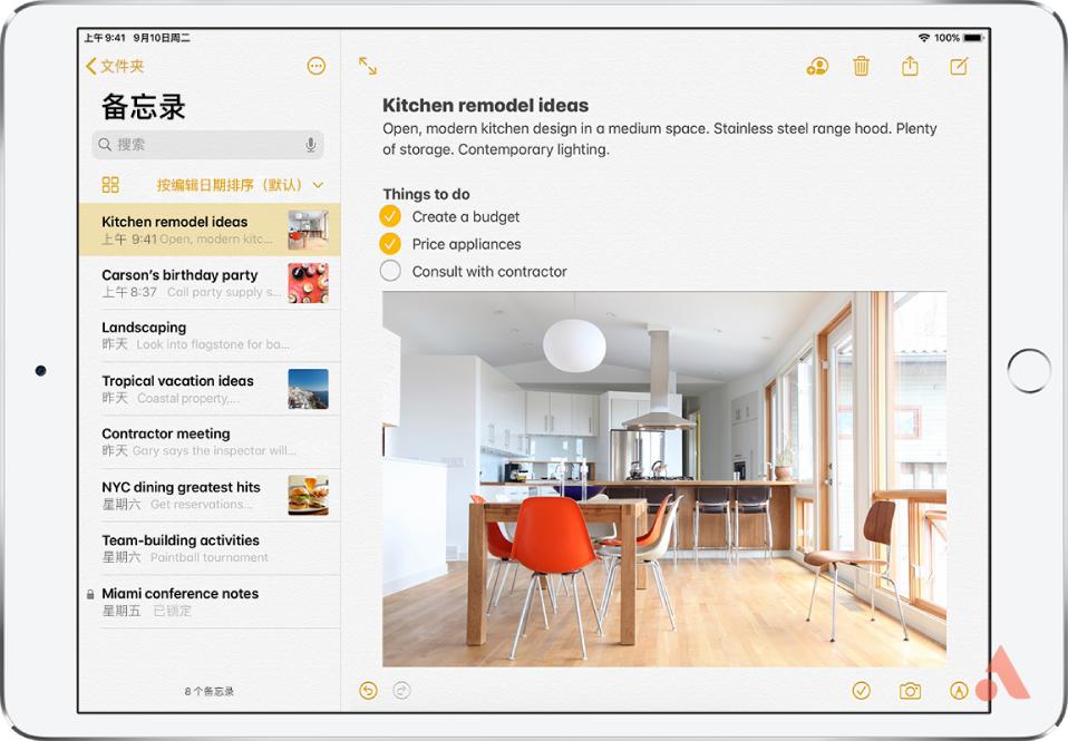 如果只是单纯想记录内容,自带的《备忘录》就能很好地完成这个工作,可以为不同的内容设置分类文件夹,还能插入表格、To do List、图片,更有大触用备忘录来画画,自带备忘录还能扫描文稿,简洁又强大。