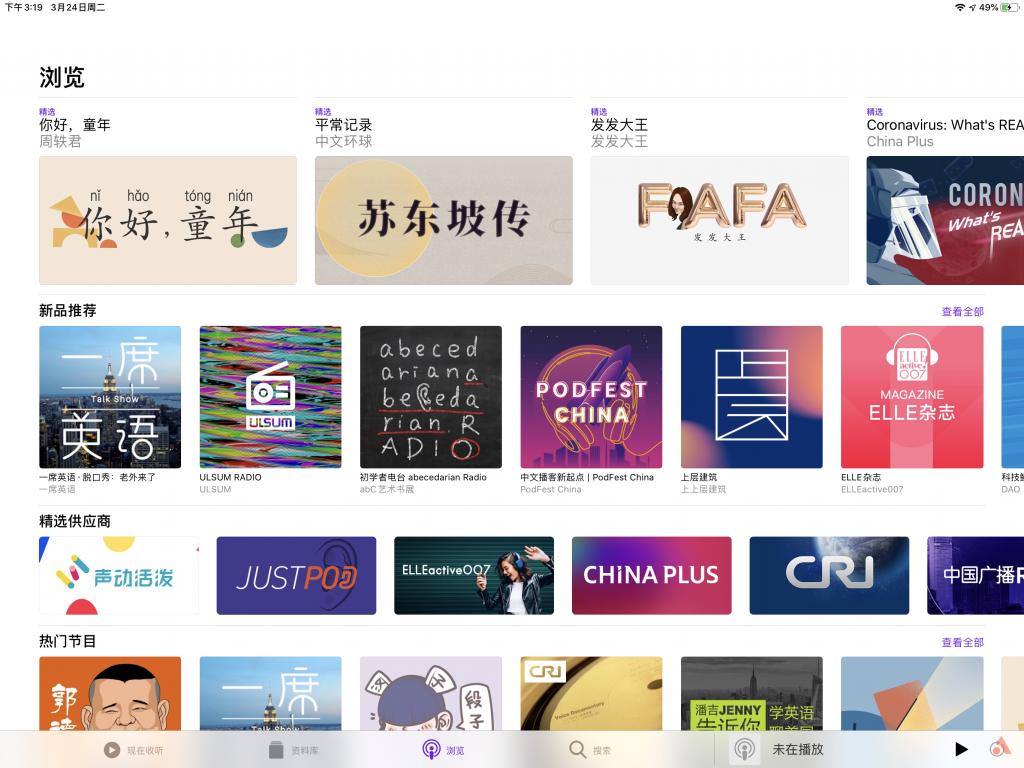 iOS 自带的《播客》相信很多朋友都忽略了,它可以说是碎片时间的完美搭配,里面有非常多的有意思的电台,互动性也非常强,给大家一个小 tip:如果你失眠,可以试试临睡前听播客,特别是那种比较安静舒缓的,一秒入睡十分助眠。