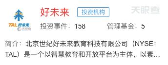 2011年起,好未来就频频对外出手投资,在投资业务上,好未来旗下分设战略投资部和教育产业基金两个投资主体,共管理8只基金。根据天眼查提供的工商资料,截至2020年3月28日,好未来公开参与投资的案例已达158起。
