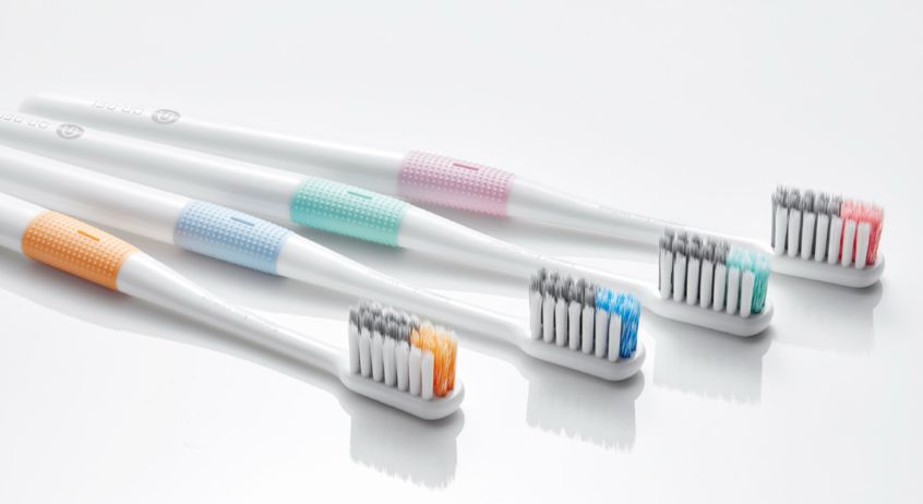 在刷丝的排布上,其中间一排是高出来的,原因就是可以四十五度角刷自己的牙齿和牙龈交界的地方,也就是牙龈沟,在那里汇聚了将近70%的牙菌斑。所以,无论是刷丝选择、刷丝排布、握持方式等,都是做了最佳处理。