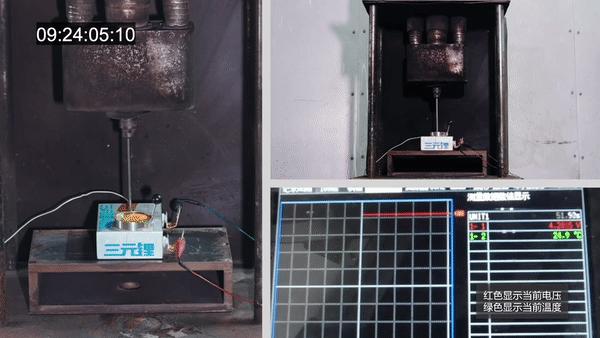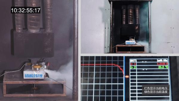 其中,三元锂电池的安全性最差,在被针刺穿后,短路产生的热量会导致电池迅速燃烧爆炸。