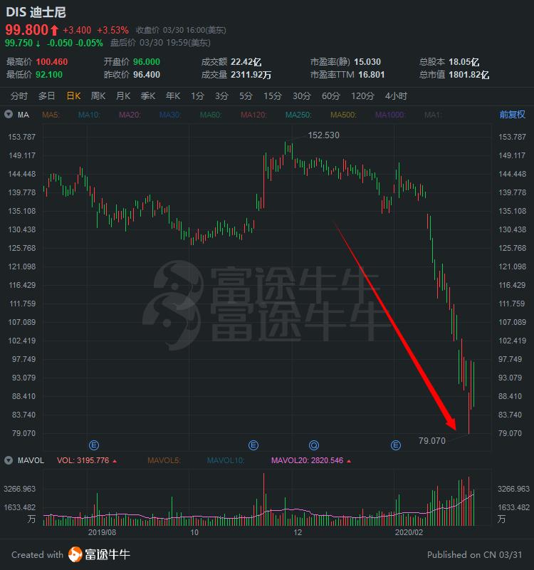 虽然迪士尼并不是近期唯一一家在发债融资缓解现金流紧张的公司,但是其现金流情况依旧引发投资者关注。尤其是去年初收购福克斯并表后,在流媒体上投入过大导致利润下滑,现金流大幅减少,叠加今年疫情下,其乐园、酒店、邮轮、影院等收入大受影响,现金流更是紧缺,股价也一落千里,从去年最高点150多美元跌落,跌幅近40%。