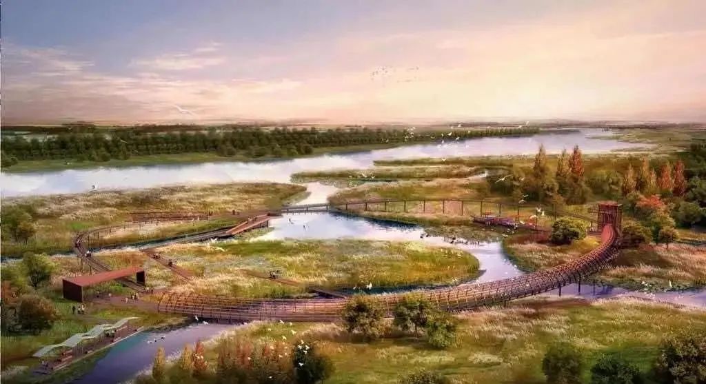 新渭沙湿地公园全部建成后,南接沣西新城南洋大道,北连渭河大堤,将成为连接西工大翱翔小镇和中国西部科技创新港的绿色纽带,成为沣西都市区的最美湿地花园。