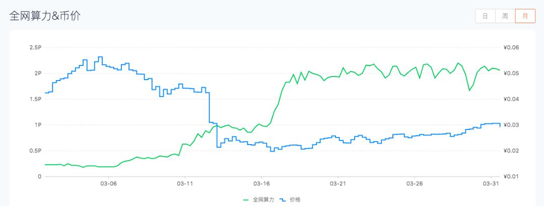 3 月 16 日之后,Nervos 的全网算力再度上涨 110%,与此同时 CKB 币价几无起色,由此可知 Toddminer C1 矿工的日收益和回本周期再度遭受冲击。