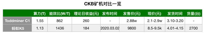 据了解,在 Toddminer C1 问世之前,挖 CKB 最理想的矿机为 Blackminer F1。但以 CKB 当前币价、全网难度和 0.38 元/kWh 的电价计,F1 的挖矿收益已不足以交电费。