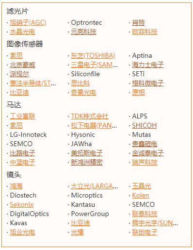 第二:摄像头,包括滤光片、图像传感器、马达、镜头,涉及众多国内外供应商。比如,疫情严重的日韩,智能手机摄像头供应大户索尼、三星产能能否及时供应得上,得打一个问号。