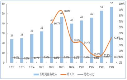 2019年,小米互联网服务收入达到198亿元,同比增长24.4%。2019年第四季度,互联网服务收入达到57亿元,同比增长41.1%。