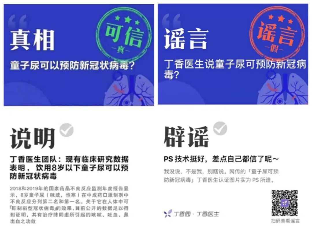 2020年2月初,新冠肺炎席卷中国,一条消息在社交媒体热传:临床数据表明8岁童子尿可预防新型冠状病毒。这条消息图文并茂,有详实的证据支撑,快速抓住网民的注意力。