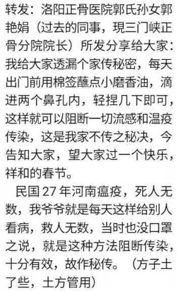 科普机构丁香医生2月1日出面辟谣,才使得这条谣言在一部分读者那些澄清了误解,但许多不知情者依然奉之为管用的“偏方”。