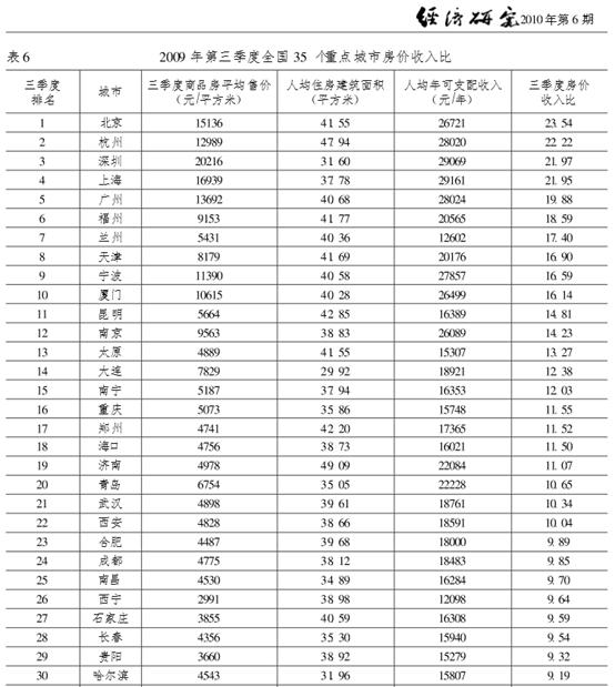 杭州,2009年GDP排全国第八,房价收入比却高居全国第二。