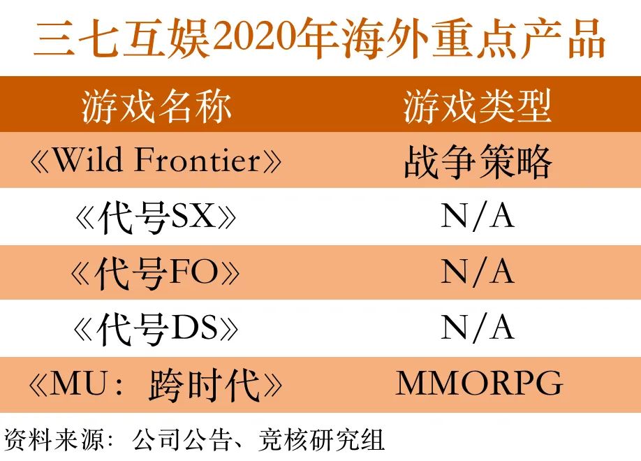 2020年全年,三七互娱海外市场的重点产品大致上有五款。