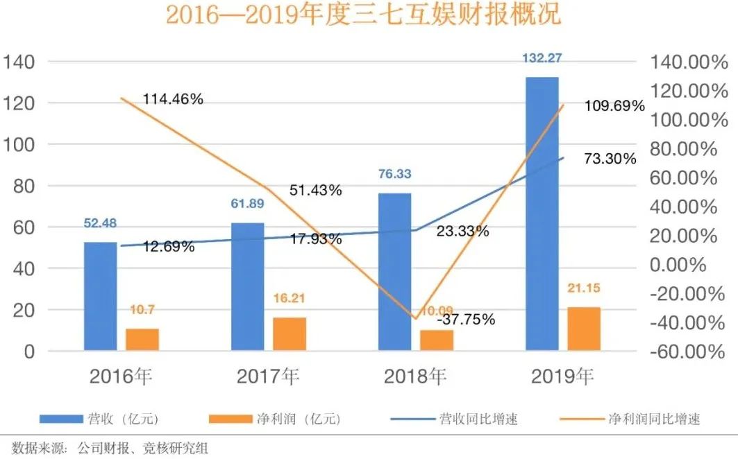 4月1日,三七互娱发布2019年财报。报告显示,2019年三七互娱营收达132.27亿元,同比增长73.30%;归母净利润达21.15亿元,较上年同期增长109.69%。