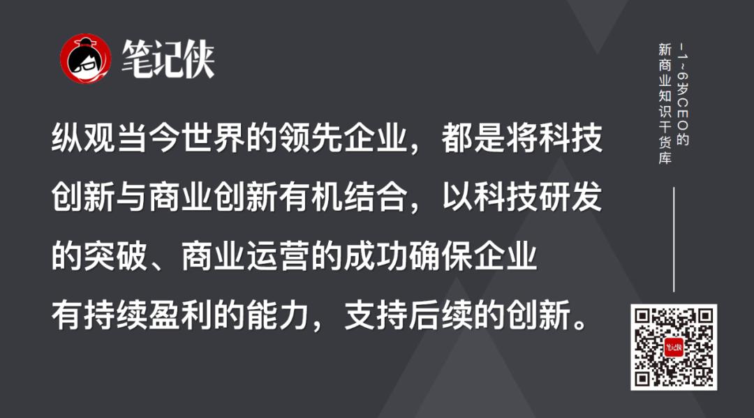 纵观当今世界的领先企业,都是将科技创新与商业创新有机结合,以科技研发的突破、商业运营的成功确保企业有持续盈利的能力,支持后续的创新。