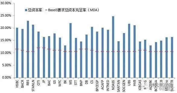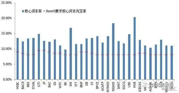 第一,全球重要性银行当前的资本充足率一般都在10%以上,距离监管者要求的最低核心资本冲率仍有较大的空间。
