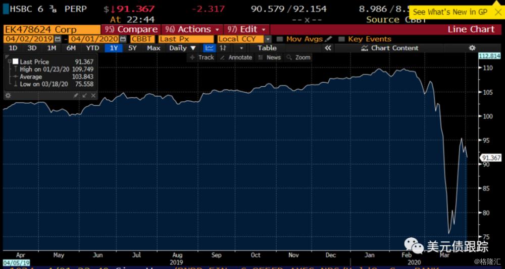 汇丰银行的股票跌得算惨的么?肯定不是。我们看看汇丰Cocos(在境内俗称为优先股/永续债),从3月份的110块的高点,抛物线下落至最低点约75块钱,暴跌35块。今天汇丰停止支付股息,则让汇丰Cocos再下5块钱,股票老司机真的要给债券老司机道一声珍重…