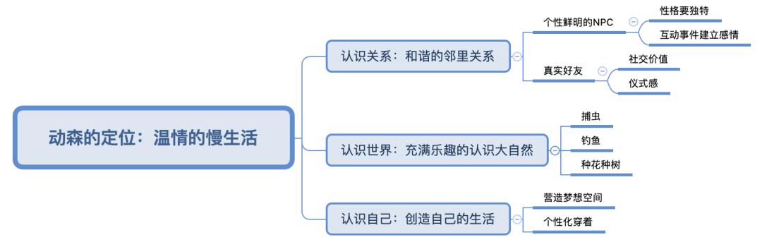 而一个爆款产品或者IP,首先要有一个成功的定位,再根据用户不断迭代,就可以获得很长的寿命。回到动森来说,动森的定位可以总结为——温情的慢生活。这个定位能量巨大,快节奏的城市生活使得我们是如此向往动森:没有敌人,邻里和睦,房贷爱还不还,饭爱吃不吃。而在这个定位下动森鲜有竞争者,不断优化和提升的动森就成为了一个强大而有生命力的IP,只是中国直到这一作才具备了动森火的条件罢了。