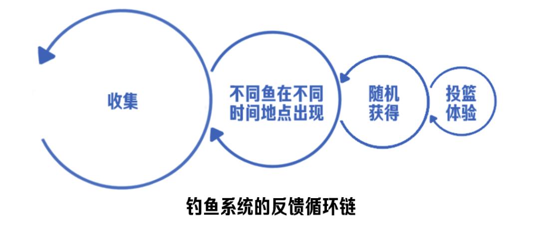 钓鱼的系统定位是充满乐趣的认识大自然,定位的核心就是好奇,那么收集就成了这个系统设计的最佳选择,而收集则要理解不同鱼在不同时间地点出现的差异,然后再让每次钓鱼的结果都是随机的,而钓鱼的方式则是以命中率为核心的「投篮体验」。这就完成了一次从系统定位到反馈循环链的逐层设计。