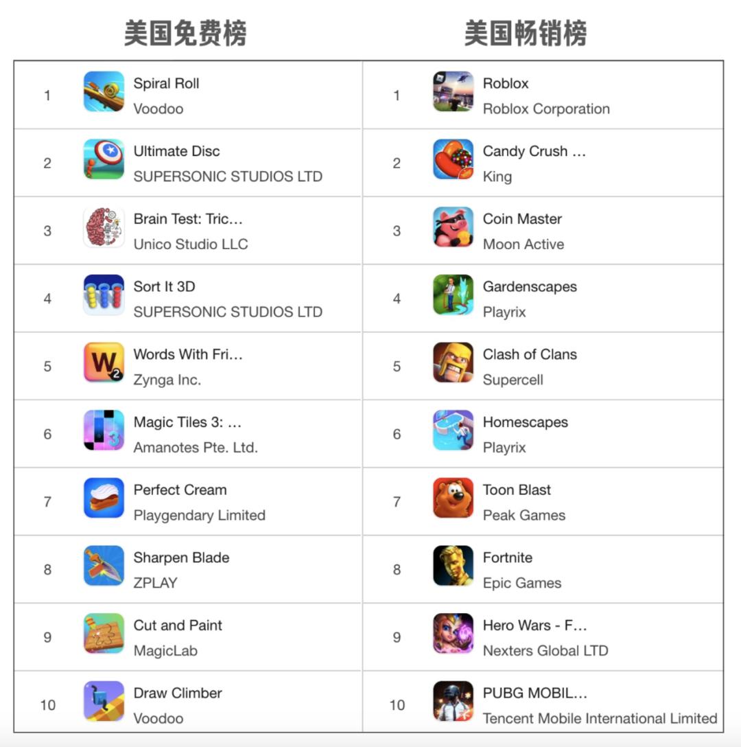 我们来看美国畅销榜,那可谓五花八门,很难说哪个品类是绝对的主角,即使国人LTV无敌的SLG在TOP50也只占10%而已。而免费榜则常年被各种奇怪的品类所占据。我们只能称之为超轻度。