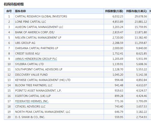 目前瑞幸的前十大机构股东分别是资本研究全球投资者(Capital Research Global Investors)、孤松资本、Alkeon资本公司、美国银行、Melvin资本管理公司、瑞银、Darsana资本、瑞信、Janus Henderson和Sylebra资本。