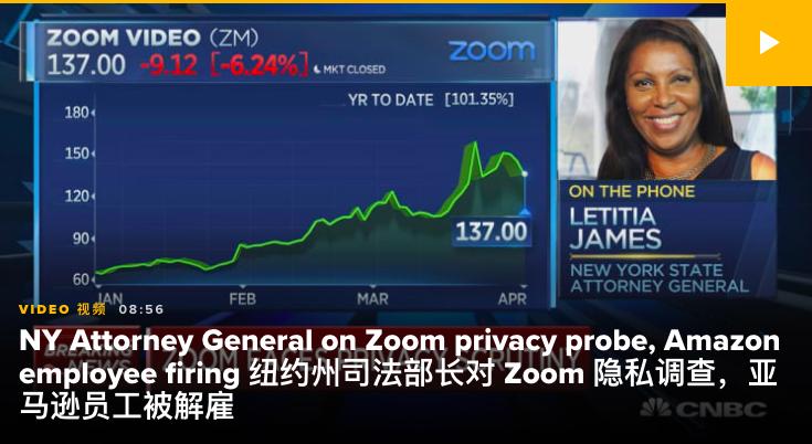 受安全漏洞事件的影响,开盘前Zoom股价一度下跌16%。开盘约一小时后,股价下挫逾7%。