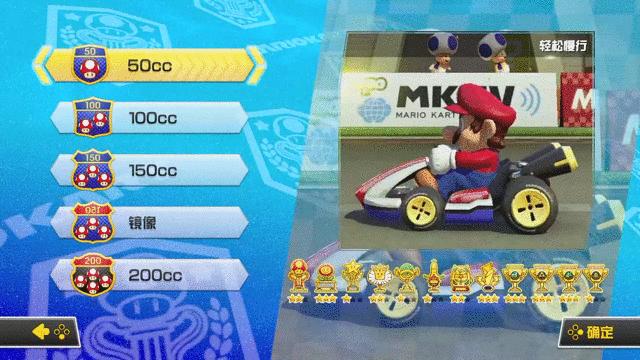 比赛之前要进行速度选择,cc就是排量,数字越高的越快,最快的200cc超哥都不敢尝试,分分钟撞大墙,建议新手选择50或100cc就好。