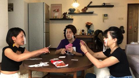 打扑克也是老少皆宜的饭后娱乐项目,谁输了谁往脸上贴条,太搞笑了。