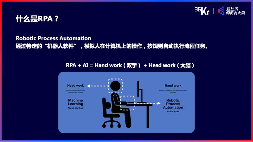 在过去40年当中,我们看到工厂的自动化程度已经提高了很多,有统计显示提高了70%,但同样一段时间里,办公场景的自动化程度提高得非常有限。今天,即便很多白领都有电脑,也在用各种各样的办公软件,但我们还是觉得自己依然非常忙碌,做很多重复的工作因而显得非常低效。