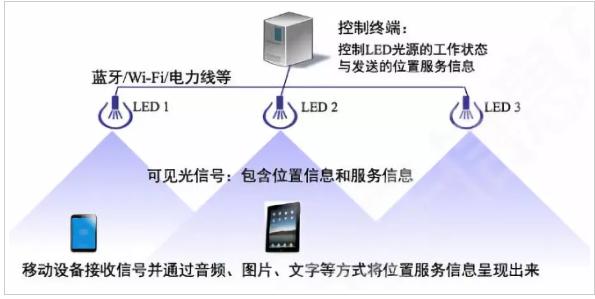 鉴于室内环境无法采用GPS定位,识别这种环境技术通常为无线接入点的部署。随着建筑内安装更多LED灯具以及可见光通信能准确定位室内位置,可见光通信成为无线接入点的替代品。典型建筑中LED的数量通常为无线接入点数量的10倍以上。LED的高密度可确保移动设备精确定位,LED照明网络的能源利用效率将促进基于位置的服务市场的增长。