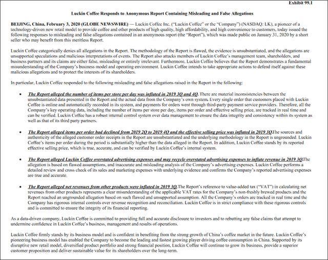 当时,瑞幸还做出了回应,称浑水毫无根据、恶意解读。