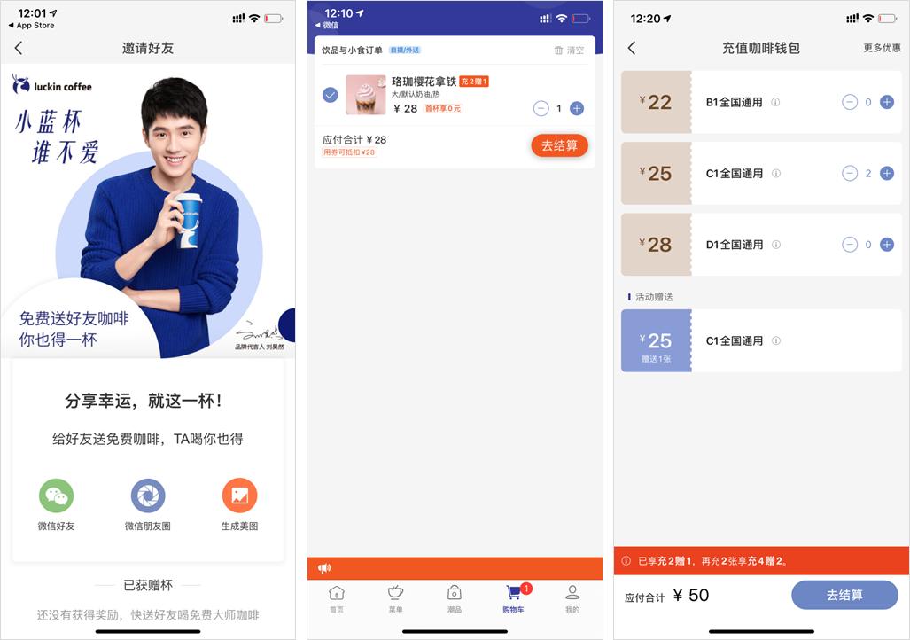 在上面我们提到了,瑞幸为了流量疯狂地推出裂变活动,各种分享送优惠券、送咖啡……