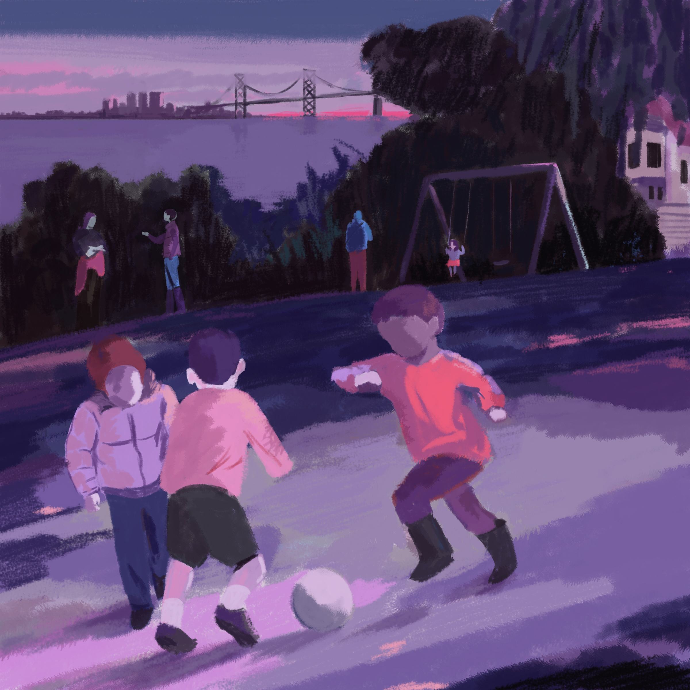 在不远处,秋千和滑滑梯一直都没有人光顾。一位母亲带着消毒液想给这些设备消消毒,但是面对这样一个庞大的工程,没几分钟她就放弃了。公园里的每一个家长都做过研究,知道病毒在什么样的表面上能存活多久的时间。