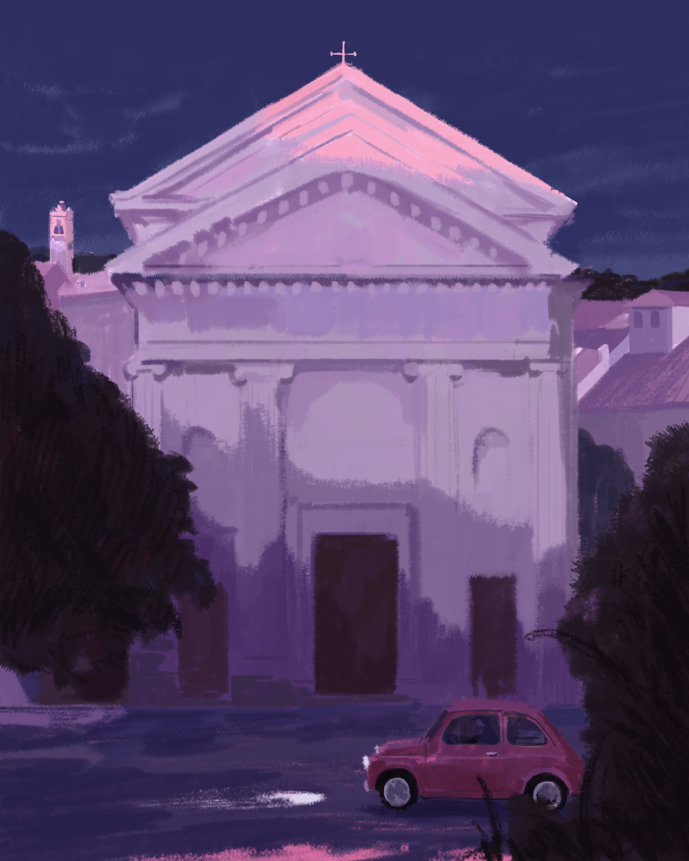 晚上八点,在维诺拉市San Nicolò大教堂前,几名外卖工作人员像往常一样聚在这里。以前这个点正是吃晚饭的时候,他们都会聚在这里等着接单。但是现在生意冷清,街上空无一人,他们在等待的时候,彼此还要保持三英尺的距离。