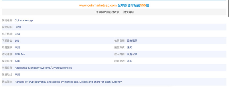 根据 chinaz.com 数据,CMC 现在全球综合排名第 555 位,其他加密数据行情网站远远落后于 CMC:Coingecko(7378位)、非小号(8801 位)、Aicoin(71862位)、skew.com(112953位)。