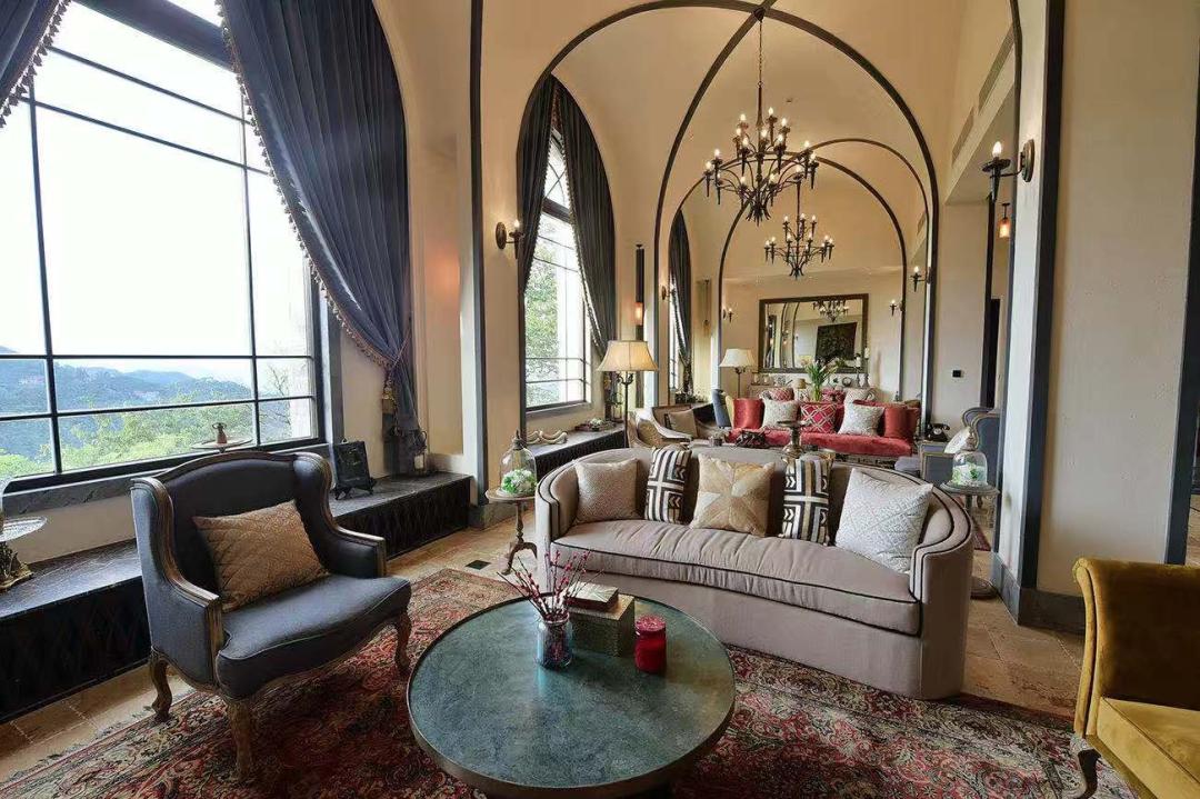 马偌杰形容,裸心堡就是一个小型王国,客人来此可以体验不同的“角色”:如果你想当国王,那就入住富丽奢华的王室套房;如果你想重回百年前风云诡谲的民国年代,颇能联想到杜月笙的“帮主”套房是个不错选择;如果想重归乡野,体味“采菊东篱下,悠然见南山”的风情,散布在林间的独立小院也能满足需求。