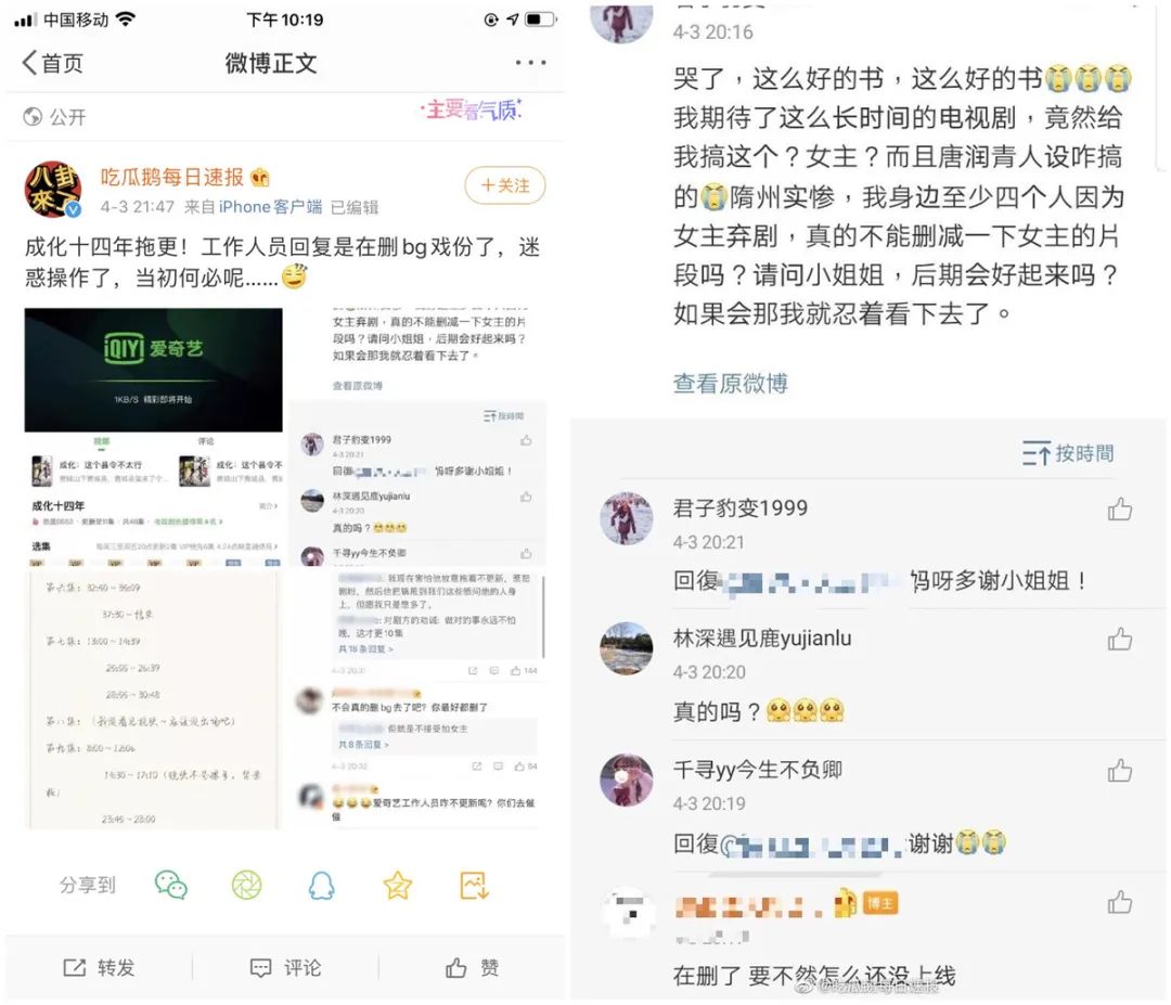 4月3日晚,该剧延迟上线,相关人员回复粉丝称正在紧急删减女主戏份。这操作也是前所未见,倒是从善如流啊。