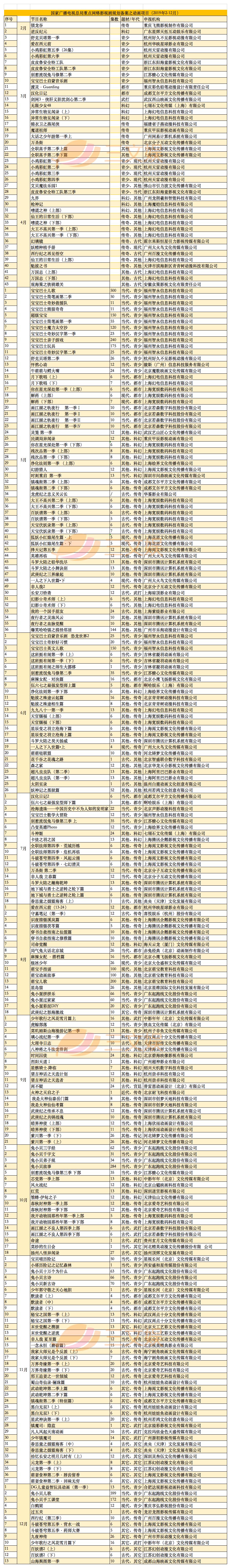 国家广播电视总局重点网络影视剧规划备案之动画项目(2019年2-12月)