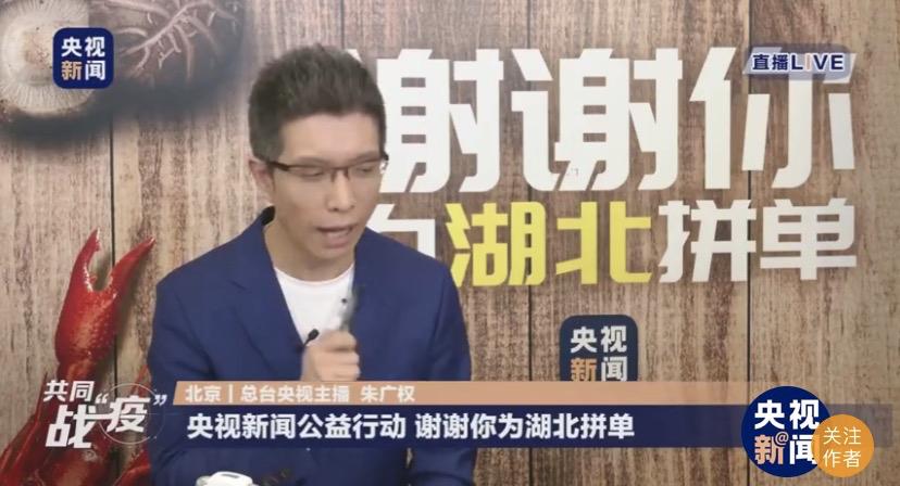 这是央视新闻和李佳琪共同推出的“谢谢你为湖北拼单”的直播,由于疫情影响,原定同框出镜的朱广权和李佳琪选择了网上连线的方式带货。