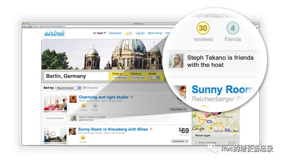airbnb是怎么解决的呢,它在当时引入facebook的社交关系图谱,这可以让你看到我的朋友,朋友的朋友是房东或者租客的facebook好友。这一方式非常有效的解决了信任这一问题。当然后面airbnb还给房东免费提供百万美金的房屋保障险,这都是平台信任建立的,逐渐巩固和加深。