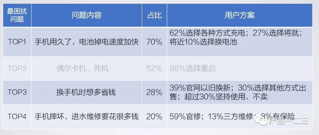 调研得出的用户最关注的前四个问题如下: