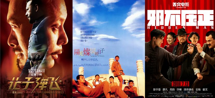 姜文的电影《阳光灿烂的日子》改编自王朔的小说《动物凶猛》,电影《鬼子来了》改编自龙凤伟的小说《生存》,电影《让子弹飞》改编自马识途的小说《盗官记》,电影《邪不压正》改编自张北海的《侠隐》。