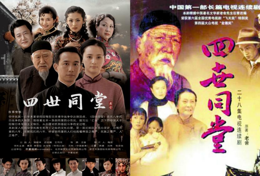 老舍先生的《四世同堂》,影视翻拍流传较广的版本,有北京电视剧制作中心于1985年制作的28集电视剧《四世同堂》,华夏视听2009年出品、汪俊导演的36集电视剧《四世同堂》。