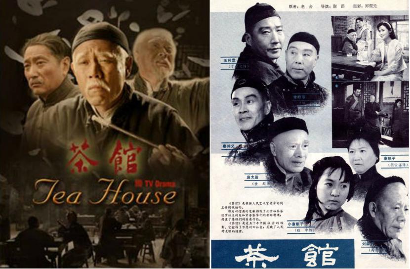 老舍先生的《茶馆》,影视翻拍流传较广的版本,有北京电影制片厂1982年摄制、谢添导演的电影《茶馆》,中国电视剧制作中心2010年投入拍摄、导演何群的39集电视剧《茶馆》。