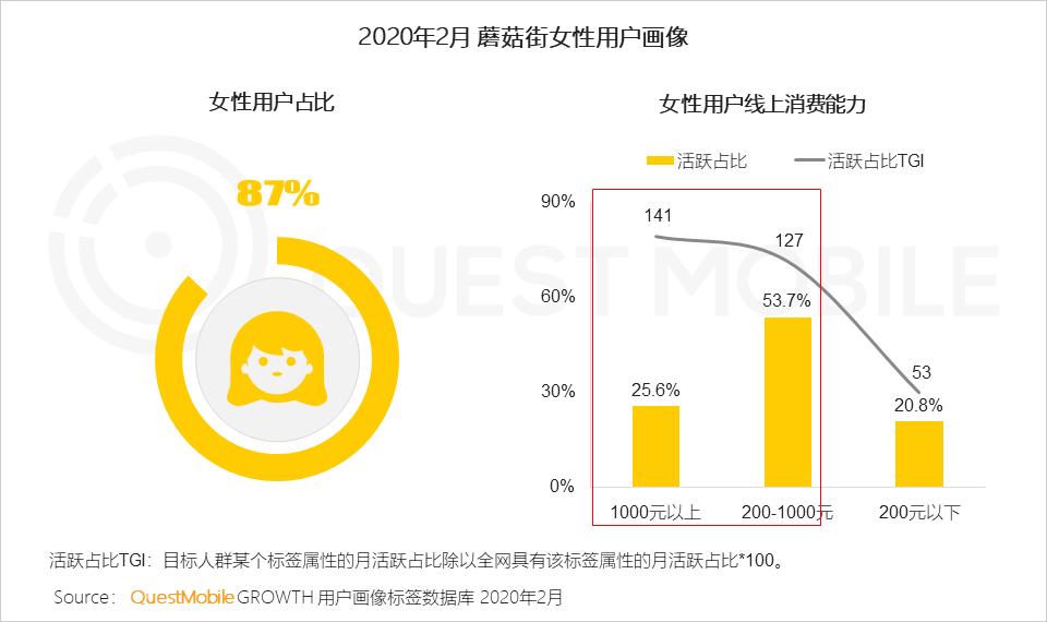 8.2 以直播为主要特色的蘑菇街,以女性用户为主,其女性用户线上消费能力显著高于全网