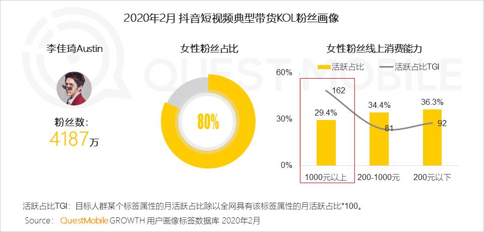 同时,女性用户的购买路径,也从以前的单独刷电商APP,形成了三大典型路径,分别是抖音、小红书等内容平台,微信、微博等社交平台,以及电商直播、拼团等种草玩法,从用户来源也能清晰看出这个路径差异:手机淘宝来自微信、抖音的用户分别为18.8%、6.6%,拼多多来自微信、QQ的用户分别为10.5%、7.1%。种草玩法,与KOL关系密切,例如李佳琦女性粉丝占比高达80%,线上消费能力千元以上的用户占比超过29.4%,可想而知。