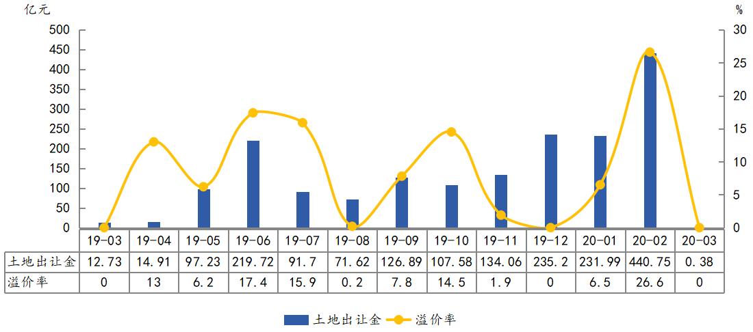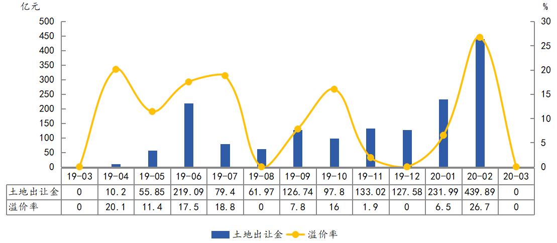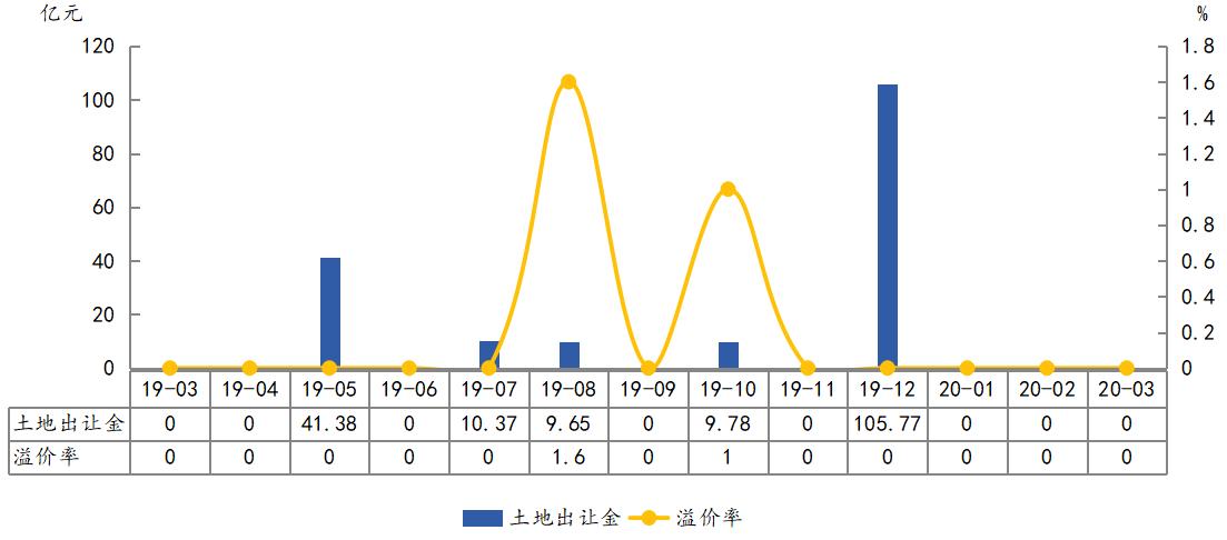 2020年1-3月,北京市成交土地出让金达671.88亿元,平均溢价率为19.5%。2020年3月北京市无成交土地。