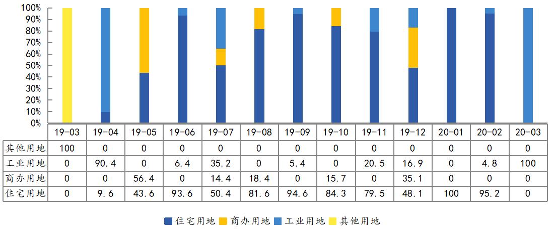 近日,中国指数研究院发布《2020年3月北京房地产市场快报》。报告显示,2020年1-3月,北京市以住宅用地成交为主,占比93.9%,其次,工业用地成交占比6.1%。