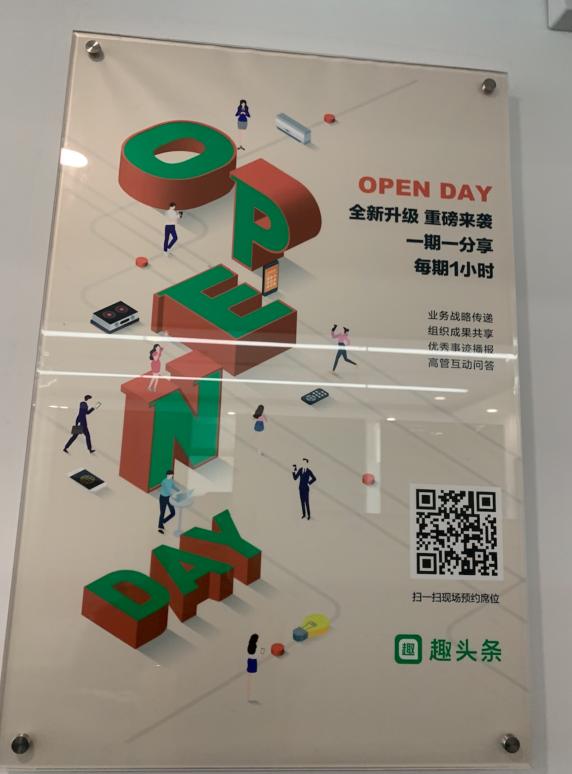 Toris进公司没几天就赶上了那个月的Open Day活动,活动一般在北上两地举办,芜湖等分公司的同事通过视频连入。让她印象深刻的是,Open Day线下异常火爆。北京银科大厦顶层的会议室都被挤得满满的,甚至会有人站在门外的走廊里听。