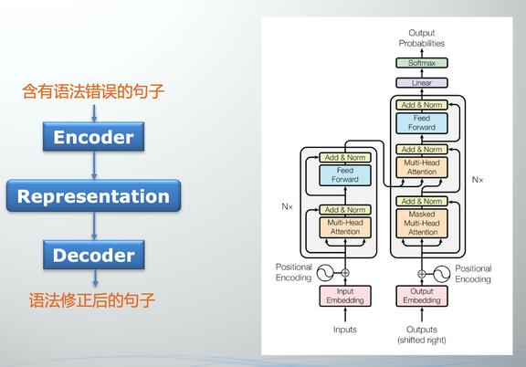 后面对于重头戏语法纠错,有道尝试将其定义成序列到序列的生成问题,利用 Transformer 的强大拟合能力与有道累积的数据量直接学习。
